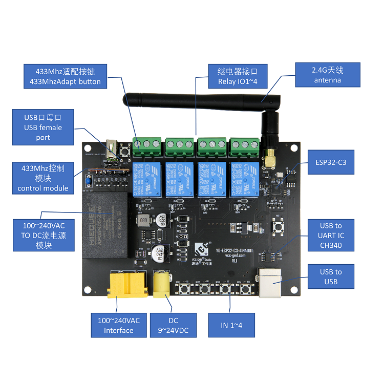 YD-ESP32-C3-4IN4OUT