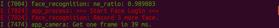 Open a serial terminal by using make monitor at this project, point the camera to a human face with a distance of 0.3m at least, then face entry will start after two faces are detected. The following information shows the output of the command line before the entry process: